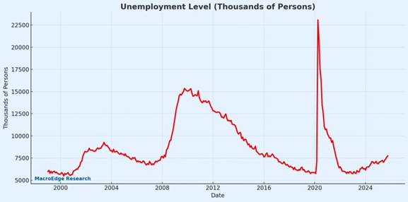 September jobs report beat on the headline +119k jobs created (+51k expected) but it’s old news and usually revised. Jobless claims also rose to 232,000, above estimated number of 223,000. The key for the Fed is the unemployment rate which rose to 4.4% from 4.3%. Even Powell has said the unemployment rate is now more important than payroll numbers. From a trading perspective the U.S. unemployment rate trends very well! (Chart 2, MacroEdge Research)