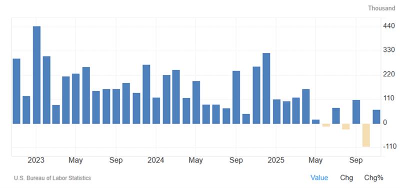 Double NFP day yesterday. October showed a drop of 105k, almost completely undoing September’s additions, and November saw a 64k rise. Federal government jobs keep falling, as workers taking Trump’s deferred buyouts leave the workforce. NFPs now showing consistently weaker monthly values than last few years. (Figure 1)