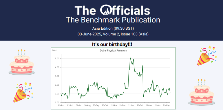 Today marks the anniversary of the first Issue of The Officials. Since 3 June 2024, we have published 543 Issues: Asia edition (250), European edition (252), Liquidity Report (16) and Editorial/Special Reports (25). The publication of physical assessment such as Dubai, Dated Brent and key market indicators such the Officials Brent Index (OBI) have generated great interest among our readers and exchanges. The publication of swap valuations has also proven helpful to our community. Our readers need easily accessible low-cost markings. We have now completed a full year of Dubai, Brent and derivatives assessments as well as newer benchmarks for Bitcoin, gold, currency indices and Dated Brent assessments.