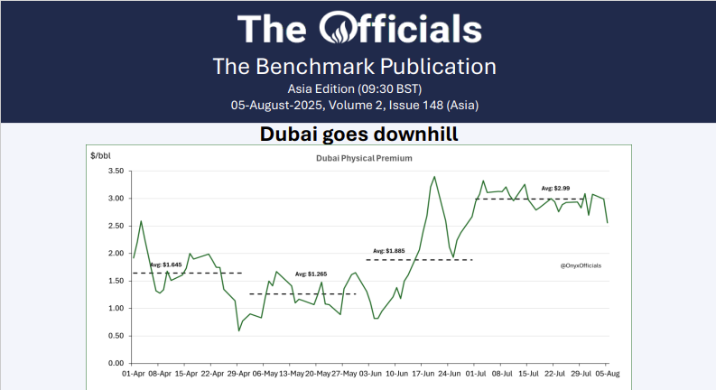 The bears are back. There is a mounting bearish sentiment in the market. Whether OPEC unwind means more barrels or not the signals say this baby is going down. Chevron is back in Venezuela, new discoveries in Brazil, and Saudi look primed to release more. Combine this with the end of summer burn and the poor macro indicators and you have an undeniably bearish concoction. And today Dubai got absolutely crushed. The physical premium shed 43c to $2.56, the softest since June 27. Look at Brent/Dubai September swap, which closed at -71c and is currently trading at around -65c, just on Friday the contract was at -$1.09!