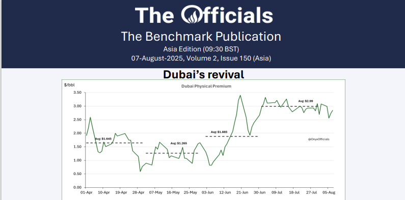 India’s robust reply to Trump’s tariffs stunned quite a few traders. They say now that India had no other option. If this is the case, why did Trump push them to the brink? Tactically and strategically the US is losing friends faster than an oil trader without a job.🤣But enough of that, what did traders think of the jump in Saudi OSPs? High, they said, but the market demand is there. Traders expect China and India to continue to focus on Russian, Iranian and of course Other PG crude streams. Demand is good but the resumption of India’s buying for Russian crude altered the perception and reality of supply and the flat price is struggling. We have heard now of at least 6 Russian cargoes to discharge in India. Trump…take that! The Brent/Dubai swap went downhill this morning, it opened at -65c, and at Singapore close, it plunged to -$1!