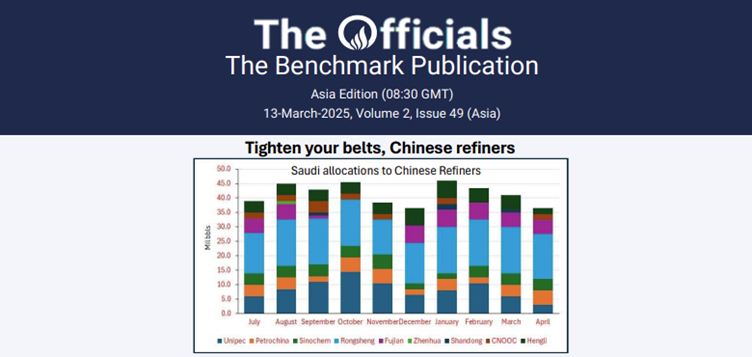 April allocations are here and they are down bad. Total allocations fell to 36.5 mil bbl – the lowest since December’s allocations! Unipec was among those having to tighten its belt, with its allocation halved from March to just 3 mil bbl. Remember they were getting 14.5 mil bbl in October! A cut even Elon Musk would be impressed by – but maybe he’s not been as successful as he would have liked… Read more on page 2! Meanwhile, PetroChina and CNOOC were the only recipients granted a larger allocation, up by 1 mil bbl and 2 mil bbl, respectively. Hengli’s allocation was slashed from 5 mil bbl to just 2 mil bbl.