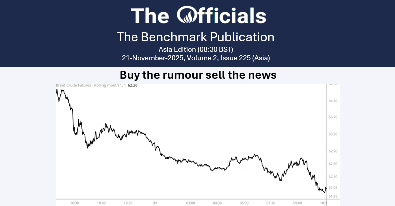 It’s the first day of a new era! At least that’s what the sanctioneers would like you to believe, as the new set of sanctions on Rosneft and Lukoil comes into force today. At least in part, except that any transactions towards the sale of foreign assets or Lukoil’s foreign retail operations can continue until 13 December. But prices don’t care – Brent is even down today, having done its anxious jumping on the announcement of extra tariffs back in October.