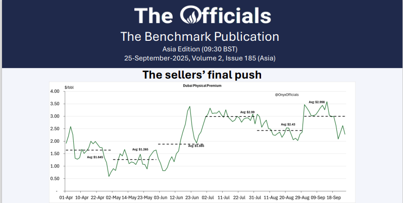 From Raging Bull yesterday to Sitting Bull today, as Brent cooled its heels and found support just over $69. It was against Dubai that Brent really showed off, as the October Brent/Dubai swap went on an adventure this morning, surging from -$1.70 in the early trading hours to -$1.41 by the Asian close, and peaking at -$1.30 shortly after! Brent was doing the heavy lifting while Dubai was chilling.
