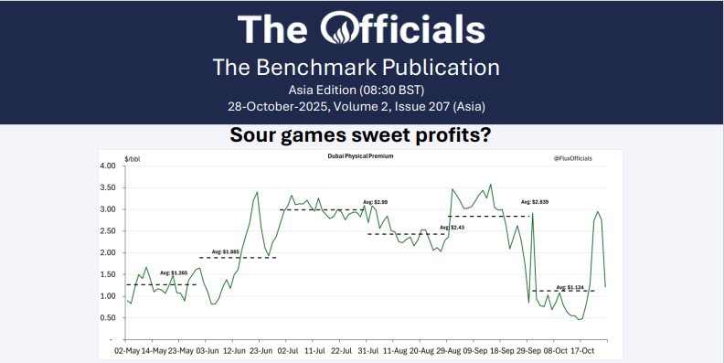 A lot of fun and games in the spot partials trading but let’s start first with the funny mentals. China’s sanctioned terminal is reportedly going full Russian because a) they are sanctioned and all they can get is Russian and Iranian and b) nobody will touch with a barge pole except the Russians and the Iranians. This is the real effect of the sanctions. And the Indians are playing a two-sided game buying some non-Russian while not fully rejecting it. Sources say Tatneft will be busy selling loads of Russian crude. And the mechanical issues are huge. A Kuwait unit essentially burned down and runs dropped so much that they need to sell extra crude in tenders. And the Indians are also facing acidity issues -not just with Trump but at one of the HPCL units. Messy…end result gasoil goes up and is also worrying Pakistan and others who are short.
