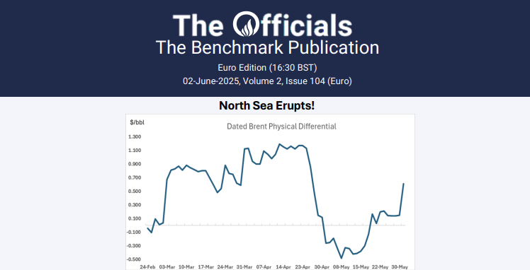 The first Dubai window of June may have been silent, but the North Sea was anything but! Totsa stormed in early on to bid for a whole range of mid- to late-June Midland cargoes. Mercuria came in bidding for Midland too, while BP, Shell and Repsol all offered. An eruption of interest! Like Etna in Sicily. Totsa got lucky, as Repsol sold it a 16-20 June cargo at Dated +$1.60, while BP and Vitol each hit one 26-30 June Midland to Totsa at $1.90 over Dated! Just one more with those dates will net Totsa a VLCC… After such a busy first June window, the physical differential zoomed up to 61c!