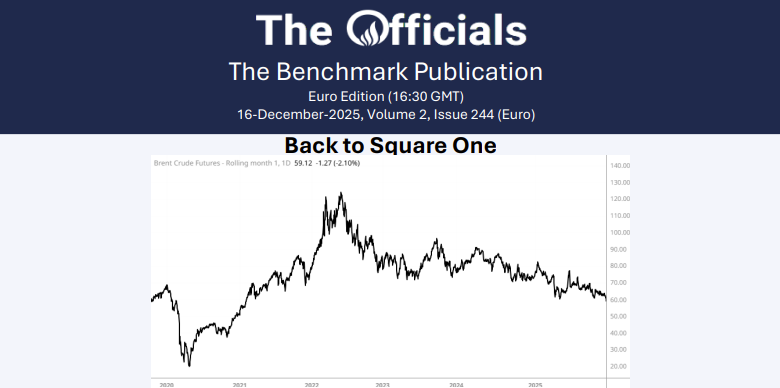 A bloodbath! Brent at its lowest since February 2021, no Christmas truce on the cards, and contango is creeping… Putin said he’ll only agree to a pause in the fighting for Christmas if they reach a deal – and of course he’s being cagey, wanting to avoid a ceasefire that allows Ukraine to better prepare for war again. Meanwhile, European leaders seem to be changing their tune towards more pro-peace rhetoric. Even Merz said he feels closer to a ceasefire than at any time in the previous 4 years.