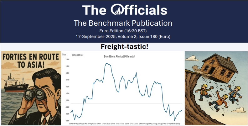 Forties is finally heading to Asia! About time, since the Forties curve is very depressed. However, we’ve not seen any bids or offers for the grade since September 11 and the value is gradually rolling up the contango curve. Freight has been keeping a lid on things but finally buyers stepped in guess what happened? “Freight markets are going crazy” in the words of a trader. You need to be a multimillionaire to secure a ship!