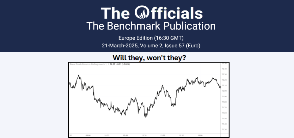 The same faces rolled into the North Sea window again! Exxon and Shell have been playing ‘will they won’t they’ for several sessions and finally they got down to it! Exxon lifted Shell’s offer for a 2-4 Apr FOB Forties at Dated +$0.25, whereupon Shell immediately withdrew its other Forties offering. Again, Exxon wasn’t picky about the freight situation and was also bidding for a CIF Forties, which Shell was happy to offer too. Shell also tried to tempt the Americans with a Midland, but Exxon knew what it wanted today and only pursued the Forties.