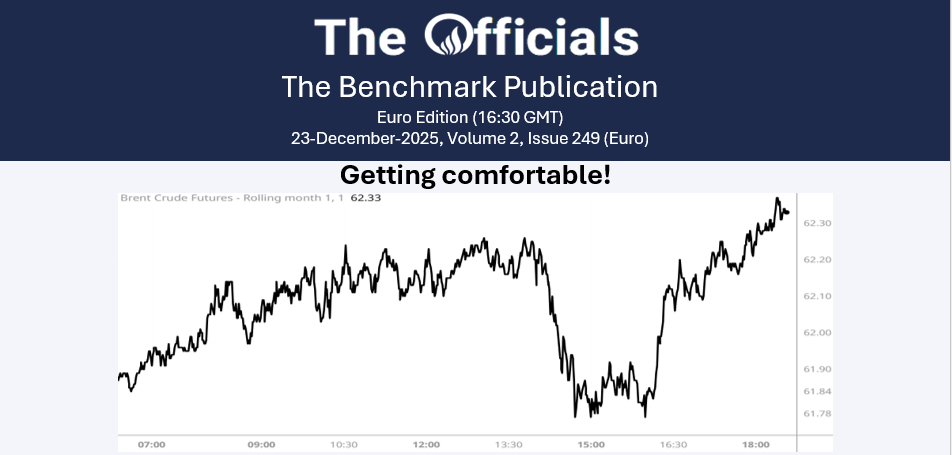 We had a brief stint below the $62 land in Brent flat price, but just after 16:00 GMT the market started moving north again to reach the close at $62.10/bbl. Things are comfy there. The prompt spread moved down in tandem, far below its 54c peak to just 44c, but by the close, it had almost offset any losses and was trading at 50c.