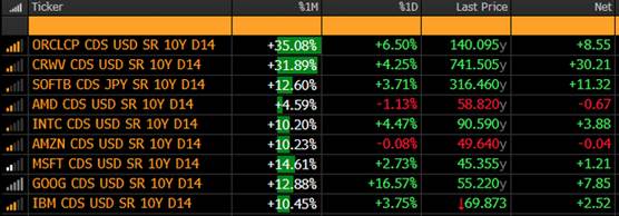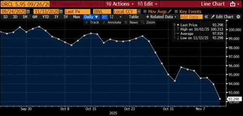 And with that their bonds are obviously falling too; Oracle’s $3.5 billion of 30-year debt issued in September has cratered by 8% from the October peak. (Chart 4, Bloomberg)