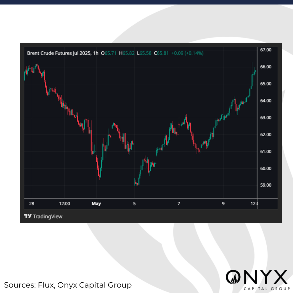 Key US economic data this week will give early indicators of the early impact of US tariffs on inflation. US CPI data comes out on Tuesday, PPI and retail sales on Thursday, and the University of Michigan Consumer Sentiment on Friday. According to a Bloomberg survey of economists, m/m inflation is expected to rise by 0.3% in April, up from 0.1% in March. Meanwhile, little change is expected in April retail sales, following a 1.5% rise in March, as front-loaded demand for motor vehicles cooled, and perhaps also a reflection of increasing consumer caution around inflation. Finally, PPI data will provide insight into shifting wholesale costs and the impact of rising input costs on supply-side inflation pressures. The extent of the inflationary pressure reflected in upcoming economic data will shape the Fed’s approach to future rate adjustments, and by extension, oil prices through its impact on demand and the dollar.
