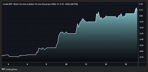 Given the continued narratives of an impending crude glut in 2026, we suggest keeping a close eye on the state of the physical market. Expectations of continued Russian crude flows saw prompt Dubai crude spreads sell off last week, with front-month Brent/Dubai surging higher from -$0.70 to $0/bbl in a week. The front Jan/Feb’26 Brent/Dubai box is trading positive, indicating relative oversupply in front Dubai.