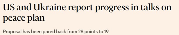 The key points of contention include territorial concessions, security guarantees, Russian frozen assets, general amnesty, and the size of Ukraine’s army. With mixed signals from Washington, there remains plenty of uncertainty ahead of the Thursday deadline imposed by Trump, with Secretary of State Marco Rubio saying that “obviously, we would love it to be Thursday”, and that Russia would also need to approve the plan. As developments continue to unfold, sensitivity to headlines may increase, especially around comments from key leaders and any indications that a peace agreement is drawing nearer.