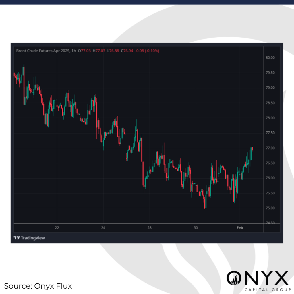 The talk of the market has been Trump’s tariff announcement on imports from Canada, Mexico, and China. This week, we expect price action in Brent crude futures to remain rangebound between $75 and $79/bbl in the Apr’25 contract as the market struggles for direction in light of recent headlines. We think the key factors for this week in the oil markets are as follows: