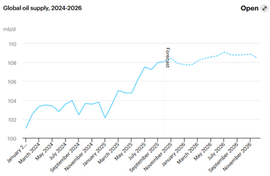 The headline in geopolitical risks for the oil market is the US strike on Venezuela on 03 Jan, capturing its President, Nicolas Maduro, and First Lady, Cilia Flores. Following the operation, US President Trump said the US would take control of Venezuela, with US oil companies prepared to rebuild the “badly broken oil infrastructure” and begin “making money for the country.” Despite a clear escalation in tensions between the nations, the prospect of greater Venezuelan production has weighed on prices today.